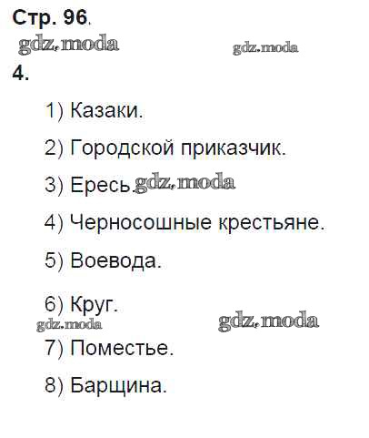 ГДЗ решение к заданию № 96 История России 6 класс рабочая тетрадь Баранов П.А. Вентана-граф 2017 ФГОС бесплатно на гдз.мода!