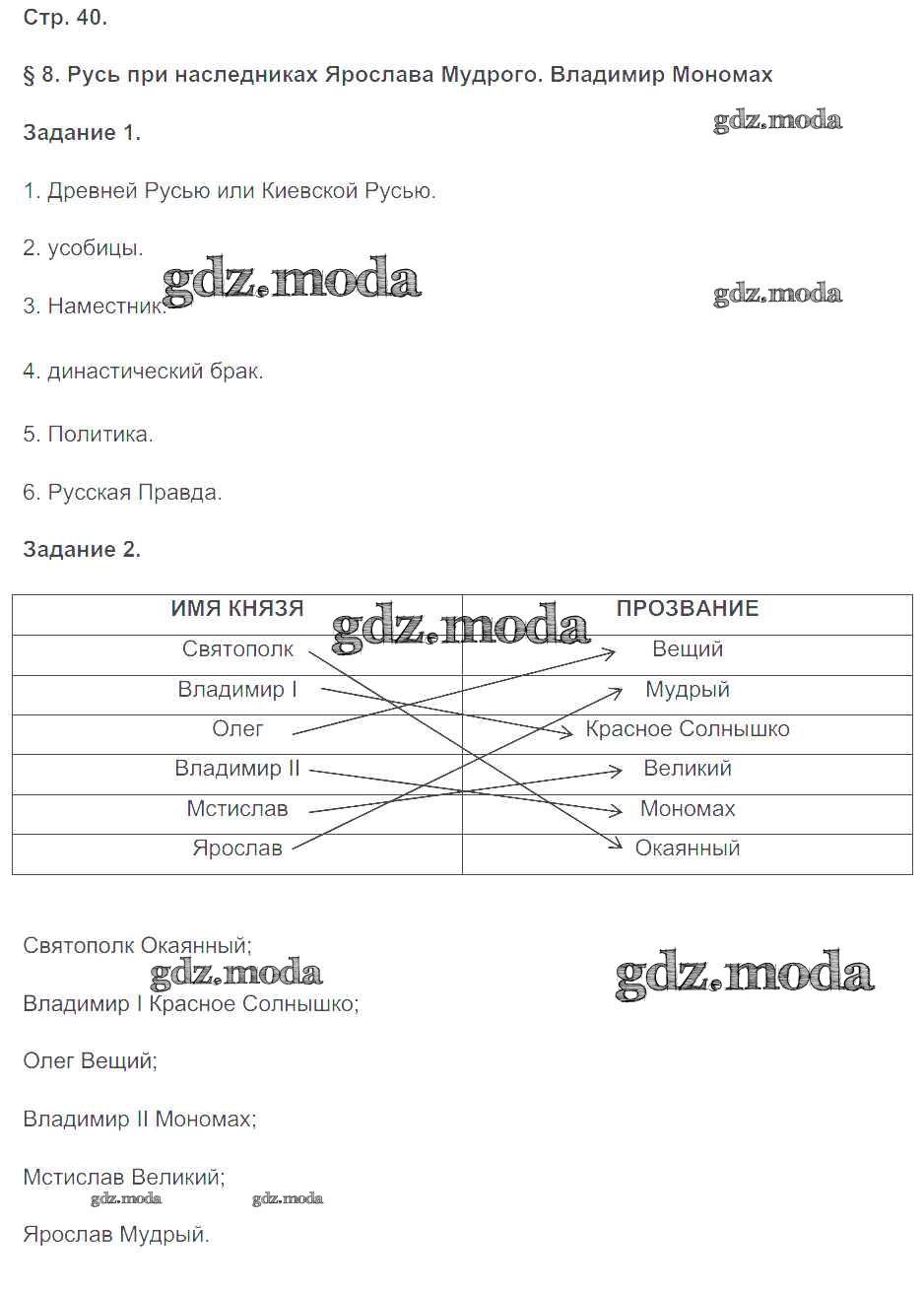 ГДЗ решение к заданию № 40 История России 6 класс рабочая тетрадь Чернова М.Н. (к уч. Торкунова) Экзамен 2017 Часть 1, Часть 2 ФГОС бесплатно на гдз.мода!