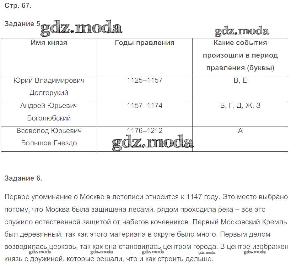 ГДЗ решение к заданию № 67 История России 6 класс рабочая тетрадь Чернова М.Н. (к уч. Торкунова) Экзамен 2017 Часть 1, Часть 2 ФГОС бесплатно на гдз.мода!