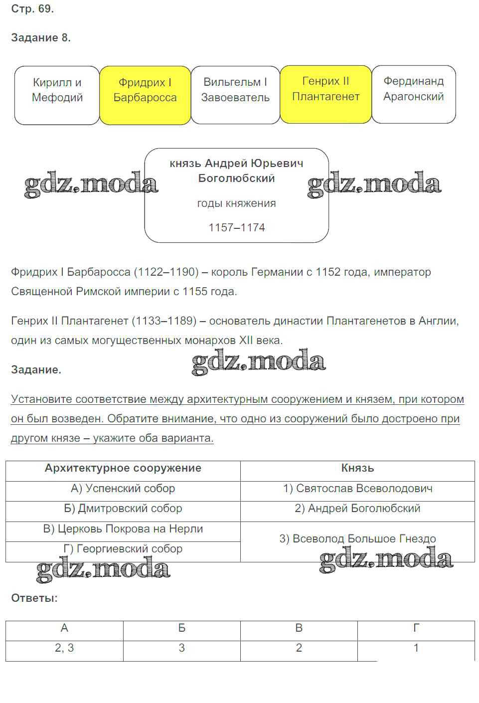 ГДЗ решение к заданию № 69 История России 6 класс рабочая тетрадь Чернова М.Н. (к уч. Торкунова) Экзамен 2017 Часть 1, Часть 2 ФГОС бесплатно на гдз.мода!