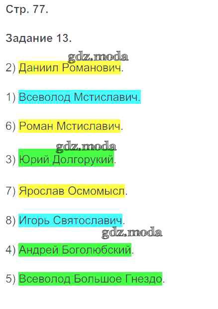 ГДЗ решение к заданию № 77 История России 6 класс рабочая тетрадь Чернова М.Н. (к уч. Торкунова) Экзамен 2017 Часть 1, Часть 2 ФГОС бесплатно на гдз.мода!