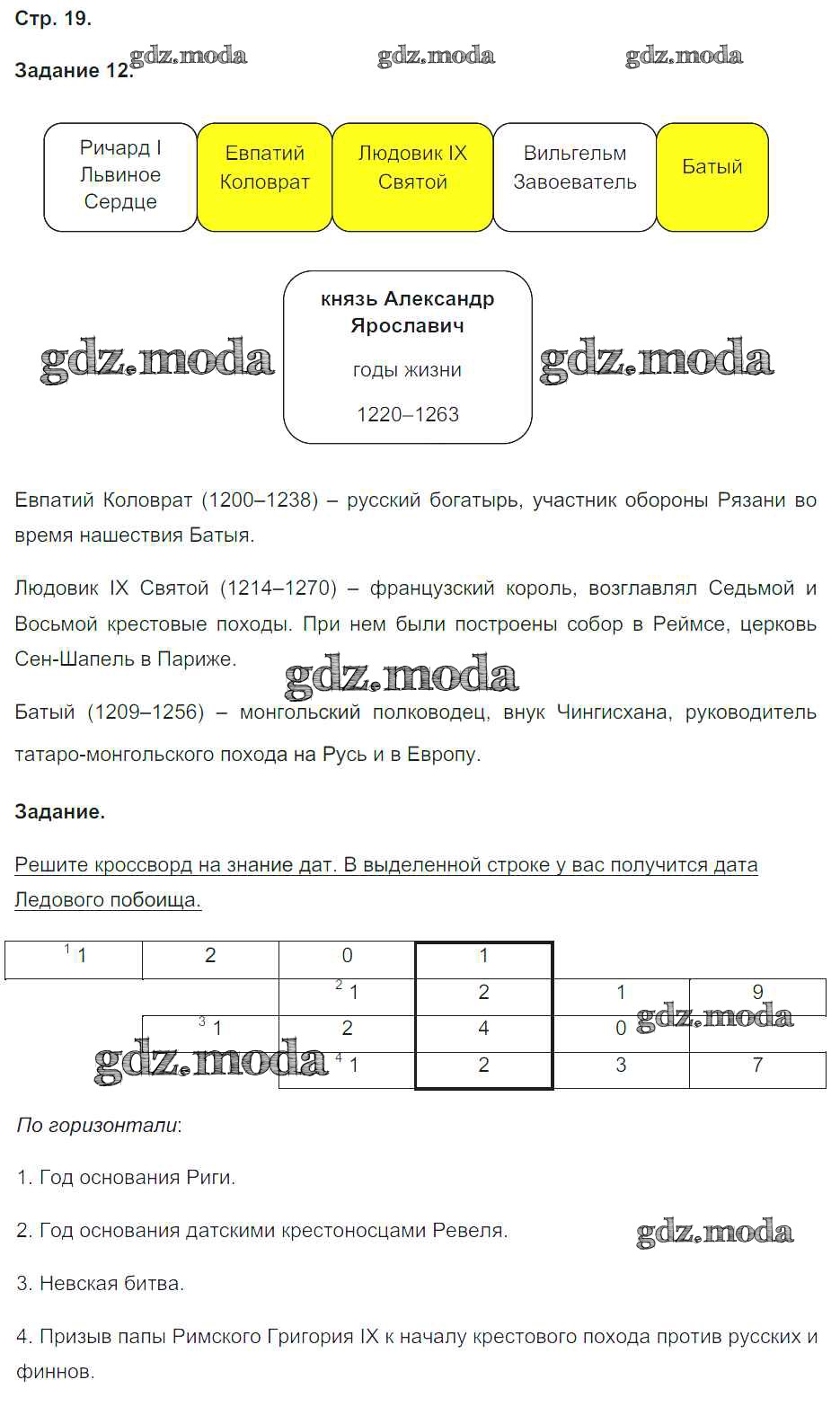 ГДЗ решение к заданию № 19 История России 6 класс рабочая тетрадь Чернова М.Н. (к уч. Торкунова) Экзамен 2017 Часть 1, Часть 2 ФГОС бесплатно на гдз.мода!
