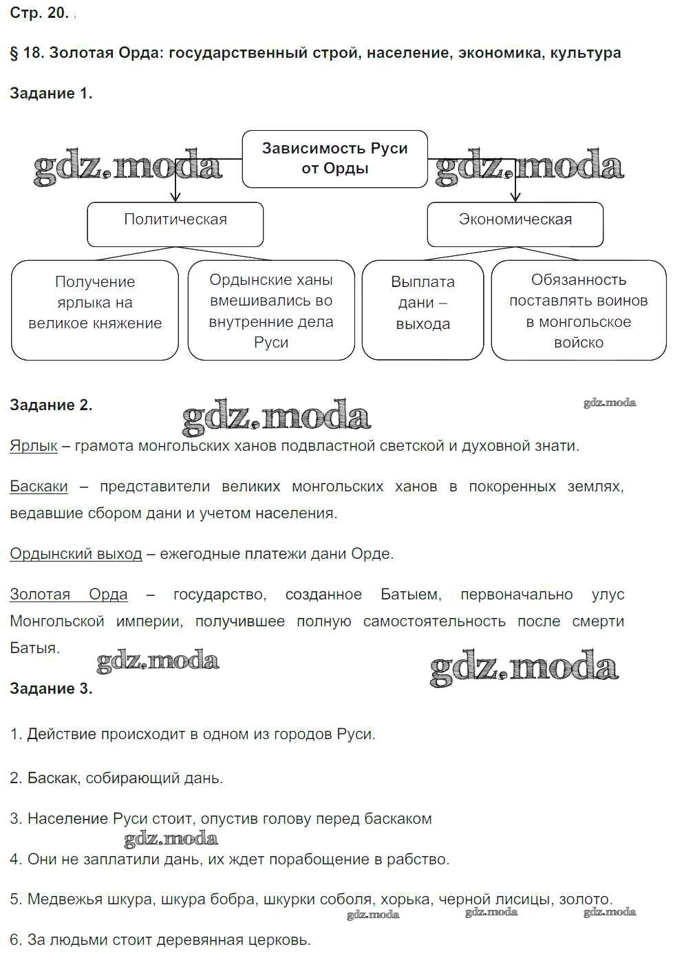 ГДЗ решение к заданию № 20 История России 6 класс рабочая тетрадь Чернова М.Н. (к уч. Торкунова) Экзамен 2017 Часть 1, Часть 2 ФГОС бесплатно на гдз.мода!