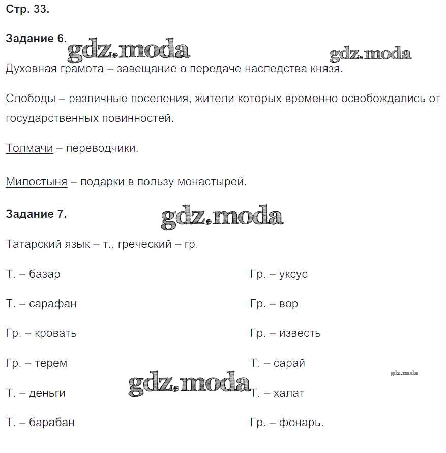 ГДЗ решение к заданию № 33 История России 6 класс рабочая тетрадь Чернова М.Н. (к уч. Торкунова) Экзамен 2017 Часть 1, Часть 2 ФГОС бесплатно на гдз.мода!