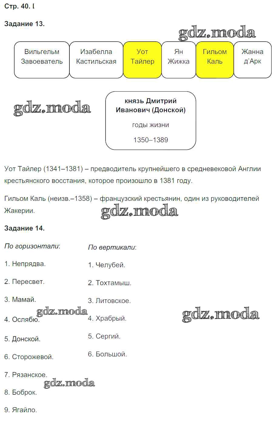 ГДЗ решение к заданию № 40 История России 6 класс рабочая тетрадь Чернова М.Н. (к уч. Торкунова) Экзамен 2017 Часть 1, Часть 2 ФГОС бесплатно на гдз.мода!