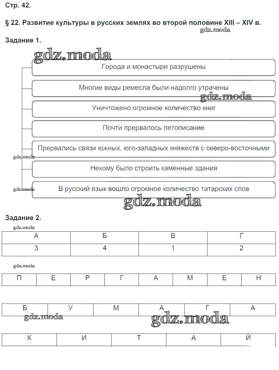 ГДЗ решение к заданию № 42 История России 6 класс рабочая тетрадь Чернова М.Н. (к уч. Торкунова) Экзамен 2017 Часть 1, Часть 2 ФГОС бесплатно на гдз.мода!