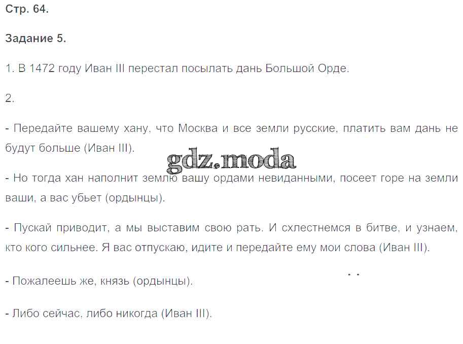 ГДЗ решение к заданию № 64 История России 6 класс рабочая тетрадь Чернова М.Н. (к уч. Торкунова) Экзамен 2017 Часть 1, Часть 2 ФГОС бесплатно на гдз.мода!