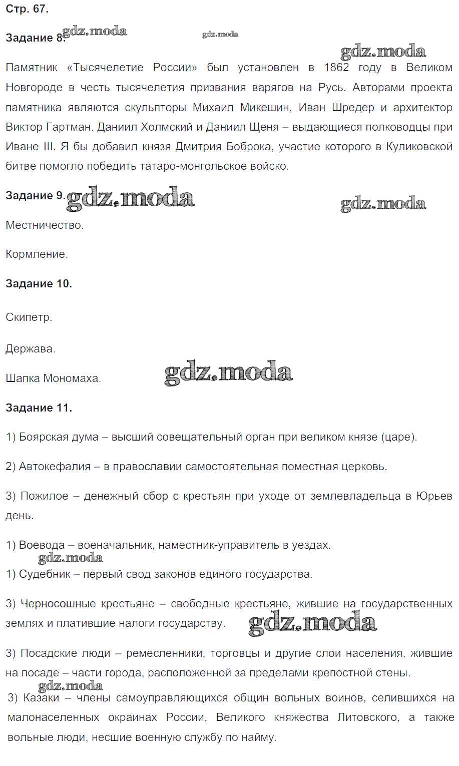 ГДЗ решение к заданию № 67 История России 6 класс рабочая тетрадь Чернова М.Н. (к уч. Торкунова) Экзамен 2017 Часть 1, Часть 2 ФГОС бесплатно на гдз.мода!