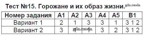 ОТВЕТ на задание № Тест №15. Горожане и их образ жизни Контрольно-измерительные материалы (КИМ) по Истории 6 класс Чернова