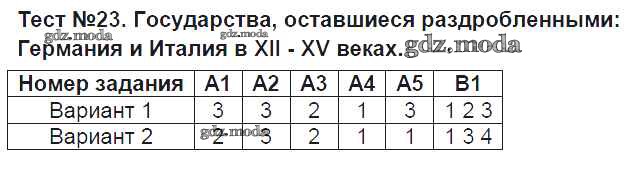 ГДЗ решение к заданию № Тест №23. Государства, оставшиеся раздробленными - Германия и Италия в XII - XV веках История средних веков 6 класс контрольно-измерительные материалы (КИМ) Чернова М.Н. Экзамен 2015 ФГОС бесплатно на гдз.мода!