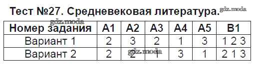 ГДЗ решение к заданию № Тест №27. Средневековая литература История средних веков 6 класс контрольно-измерительные материалы (КИМ) Чернова М.Н. Экзамен 2015 ФГОС бесплатно на гдз.мода!