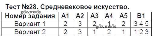 ГДЗ решение к заданию № Тест №28. Средневековое искусство История средних веков 6 класс контрольно-измерительные материалы (КИМ) Чернова М.Н. Экзамен 2015 ФГОС бесплатно на гдз.мода!