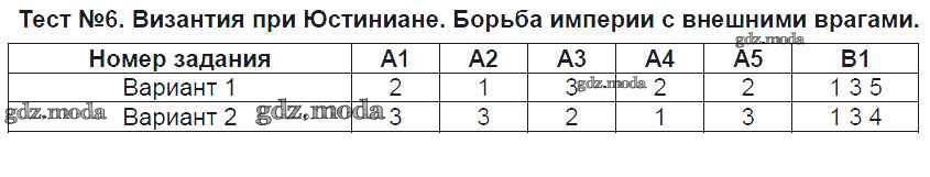 ГДЗ решение к заданию № Тест №6. Византия при Юстиниане. Борьба империи с внешними врагами История средних веков 6 класс контрольно-измерительные материалы (КИМ) Чернова М.Н. Экзамен 2015 ФГОС бесплатно на гдз.мода!