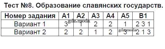 ГДЗ решение к заданию № Тест №8. Образование славянских государств История средних веков 6 класс контрольно-измерительные материалы (КИМ) Чернова М.Н. Экзамен 2015 ФГОС бесплатно на гдз.мода!