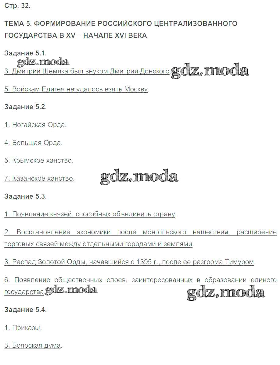 ГДЗ решение к заданию № 32 История Древнейших времен до конца XVI в. 6 класс Рабочая тетрадь с контурными картами Симонова Е.В. Экзамен 2018 ФГОС бесплатно на гдз.мода!