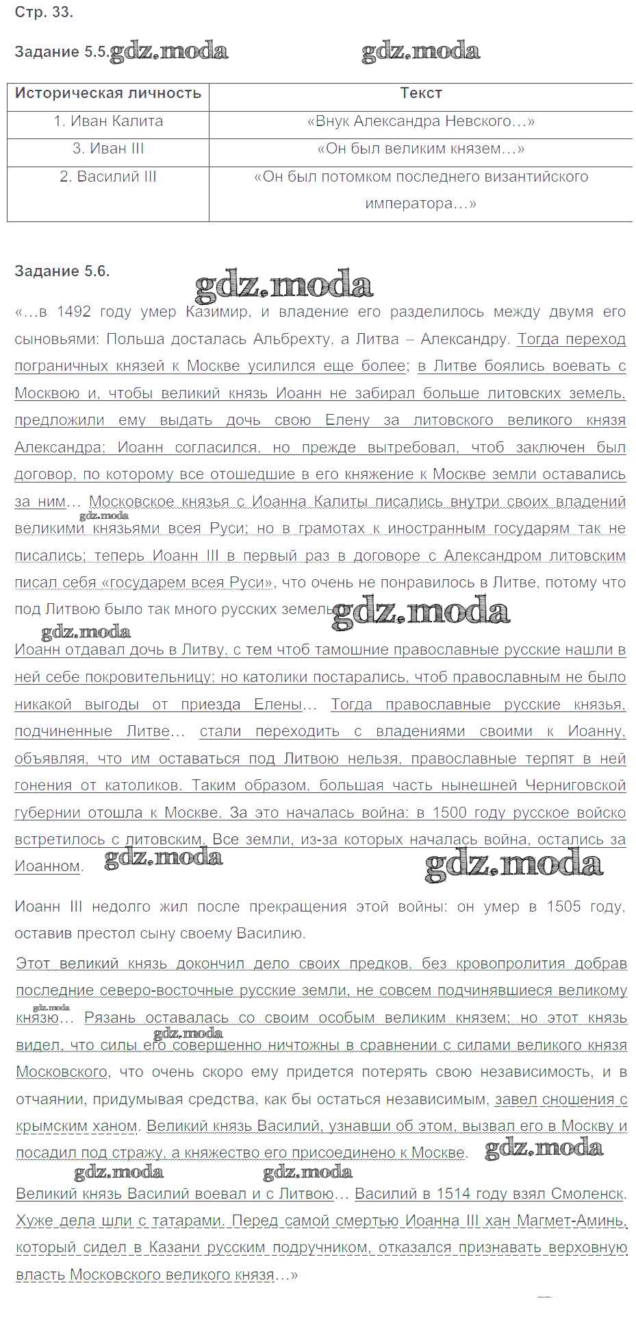 ГДЗ решение к заданию № 33 История Древнейших времен до конца XVI в. 6 класс Рабочая тетрадь с контурными картами Симонова Е.В. Экзамен 2018 ФГОС бесплатно на гдз.мода!