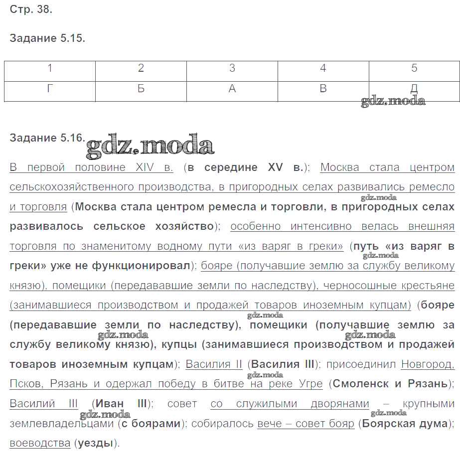 ГДЗ решение к заданию № 38 История Древнейших времен до конца XVI в. 6 класс Рабочая тетрадь с контурными картами Симонова Е.В. Экзамен 2018 ФГОС бесплатно на гдз.мода!