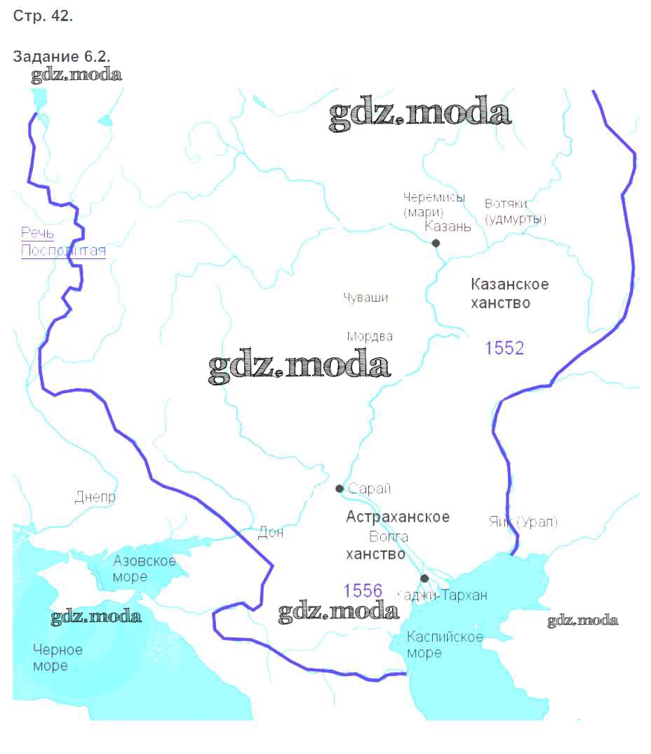ГДЗ решение к заданию № 42 История Древнейших времен до конца XVI в. 6 класс Рабочая тетрадь с контурными картами Симонова Е.В. Экзамен 2018 ФГОС бесплатно на гдз.мода!
