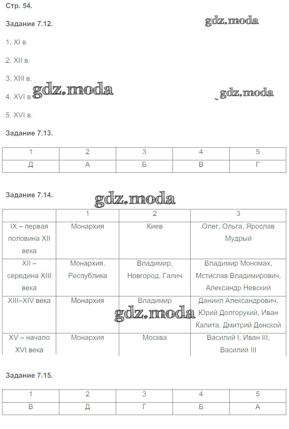 ГДЗ решение к заданию № 54 История Древнейших времен до конца XVI в. 6 класс Рабочая тетрадь с контурными картами Симонова Е.В. Экзамен 2018 ФГОС бесплатно на гдз.мода!
