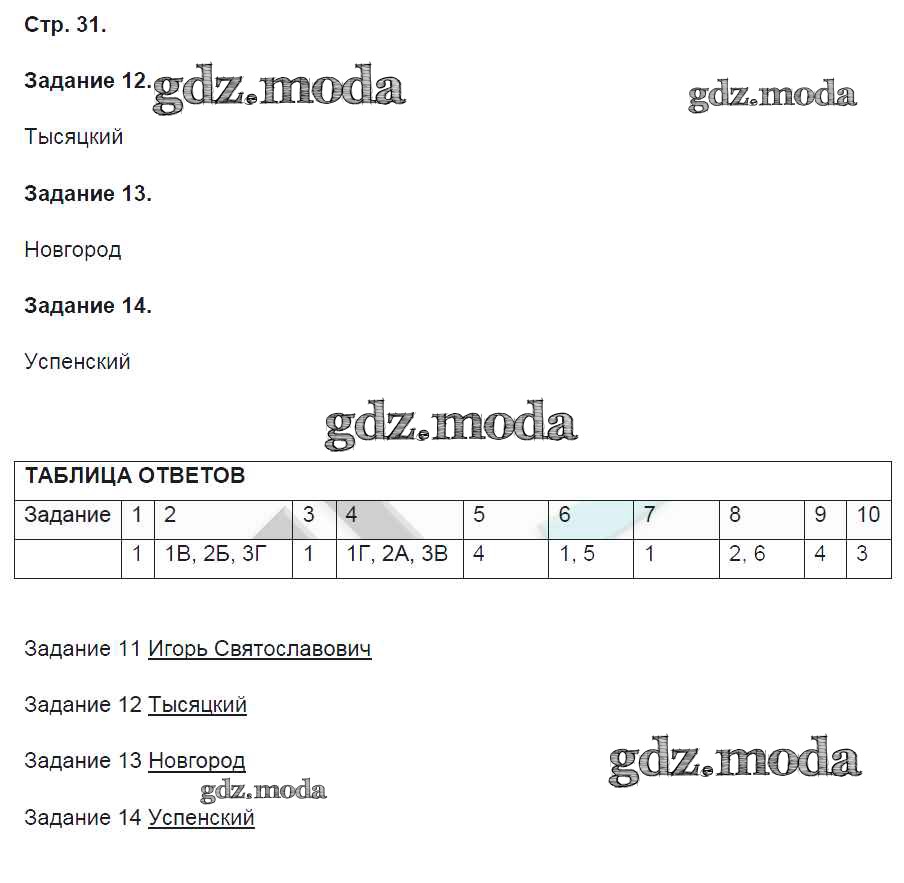 ГДЗ решение к заданию № 31 История России 6 класс контрольные работы Артасов И.А. Просвещение 2016 ФГОС бесплатно на гдз.мода!