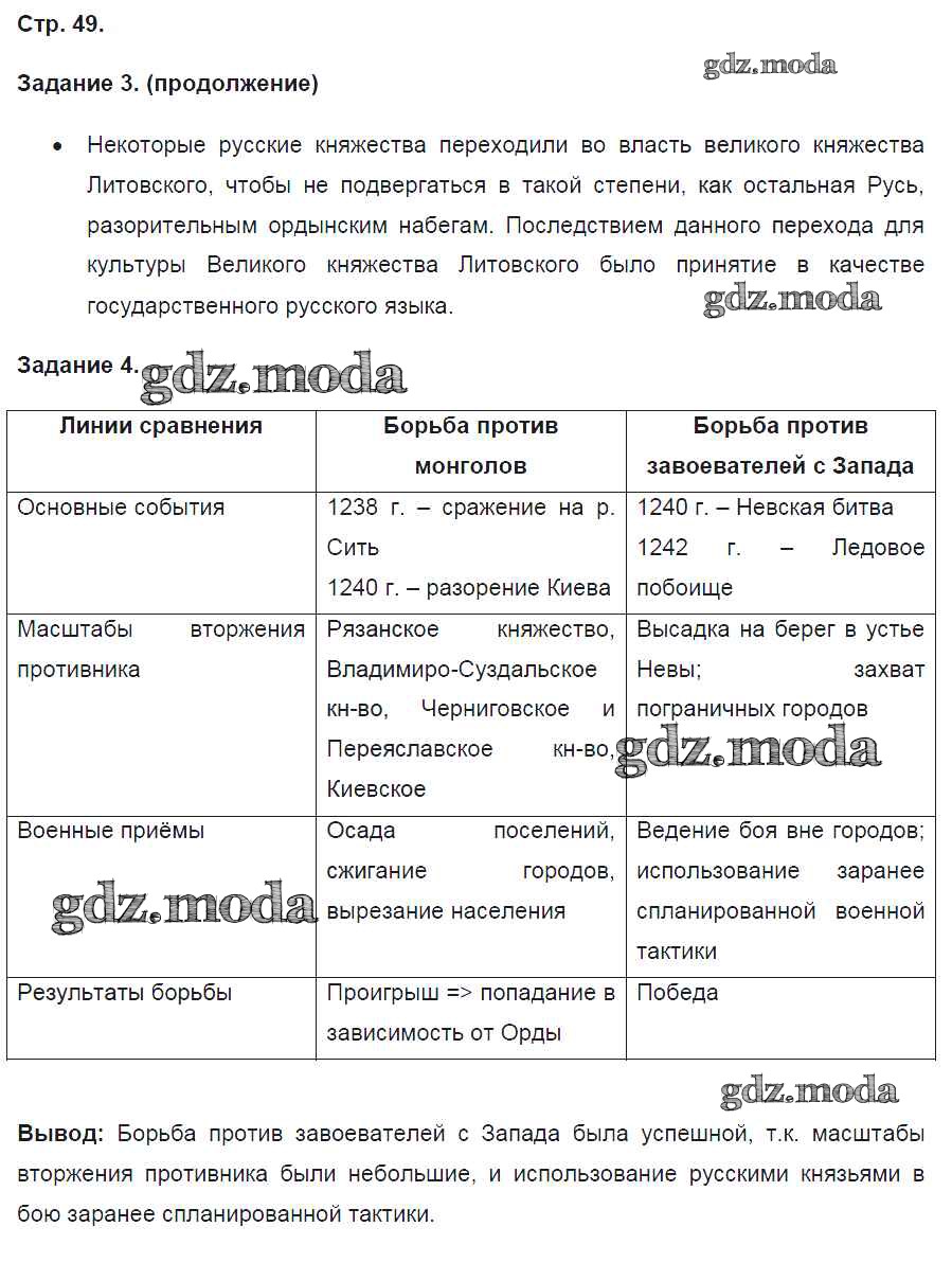 ГДЗ решение к заданию № 49 История России 6 класс контрольные работы Артасов И.А. Просвещение 2016 ФГОС бесплатно на гдз.мода!