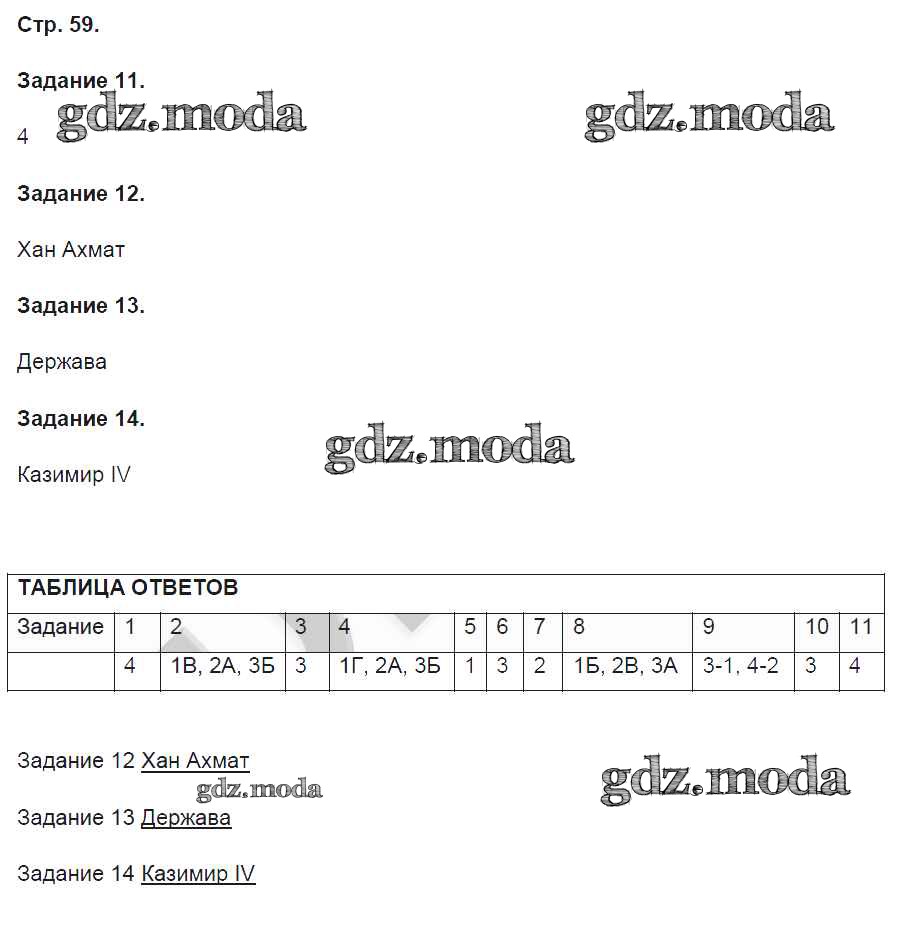 ГДЗ решение к заданию № 59 История России 6 класс контрольные работы Артасов И.А. Просвещение 2016 ФГОС бесплатно на гдз.мода!