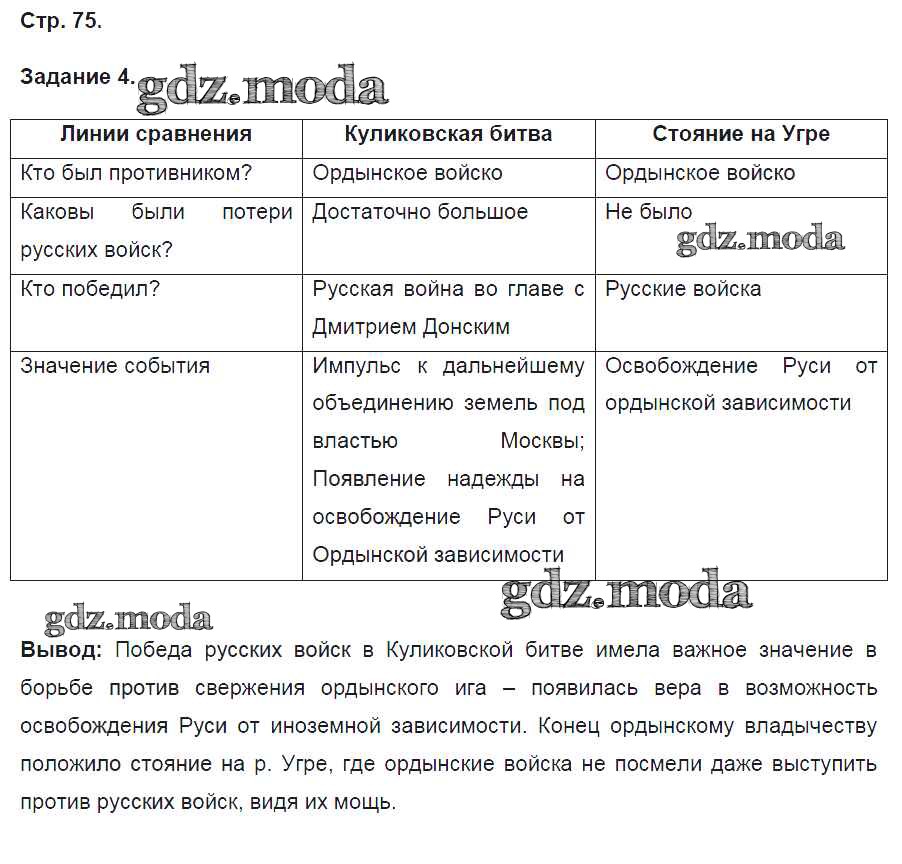 ГДЗ решение к заданию № 75 История России 6 класс контрольные работы Артасов И.А. Просвещение 2016 ФГОС бесплатно на гдз.мода!