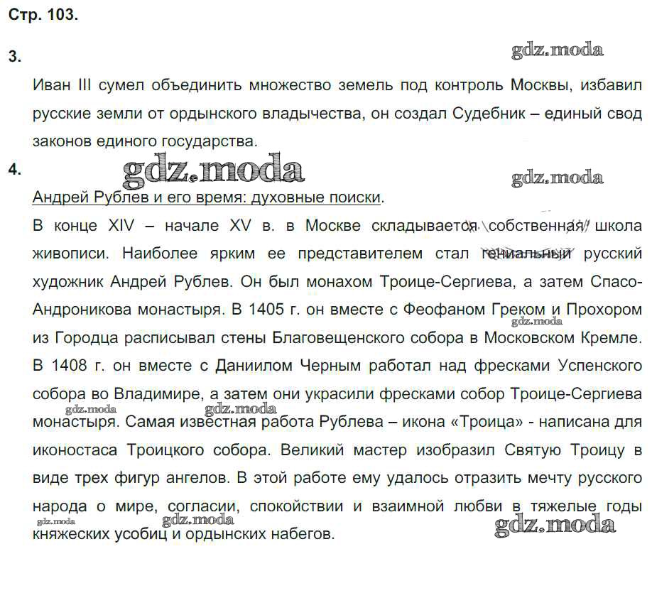ГДЗ решение к заданию № 103 История России 6 класс рабочая тетрадь Гевуркова Е.А. (к уч.Торкунова) Экзамен 2018 ФГОС бесплатно на гдз.мода!