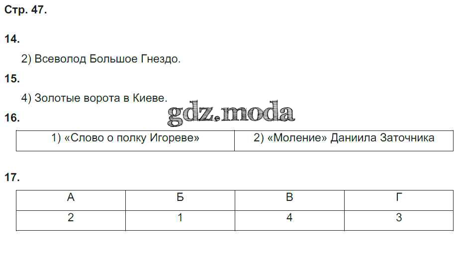 ГДЗ решение к заданию № 47 История России 6 класс рабочая тетрадь Гевуркова Е.А. (к уч.Торкунова) Экзамен 2018 ФГОС бесплатно на гдз.мода!