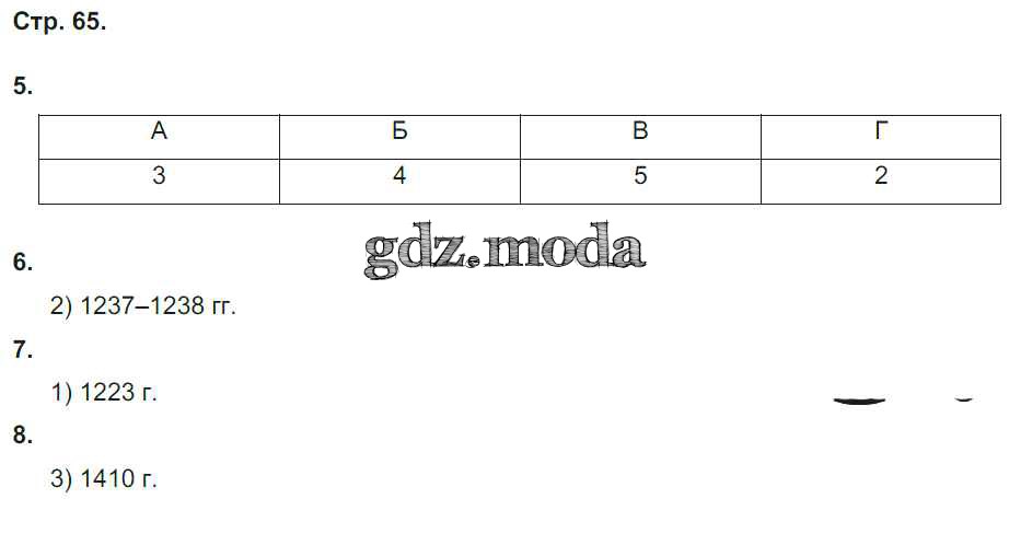 ГДЗ решение к заданию № 65 История России 6 класс рабочая тетрадь Гевуркова Е.А. (к уч.Торкунова) Экзамен 2018 ФГОС бесплатно на гдз.мода!