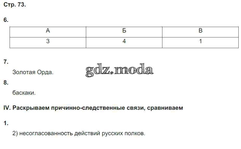 ГДЗ решение к заданию № 73 История России 6 класс рабочая тетрадь Гевуркова Е.А. (к уч.Торкунова) Экзамен 2018 ФГОС бесплатно на гдз.мода!