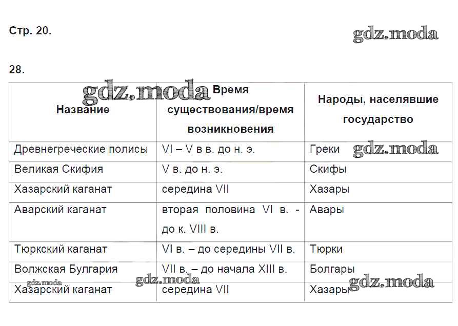 ОТВЕТ на задание № стр. 20 Рабочая тетрадь по Истории 6 класс Кочегаров Инновационная школа