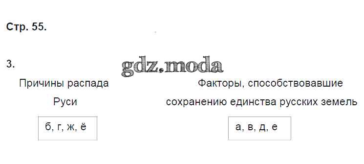 ГДЗ решение к заданию № стр. 55 История России с древнейших времен до начала XVI века 6 класс рабочая тетрадь Кочегаров К.А. (к уч. Пчелова) Русское слово 2017 ФГОС бесплатно на гдз.мода!