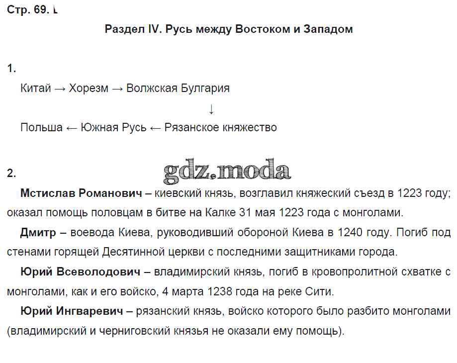 ГДЗ решение к заданию № стр. 69 История России с древнейших времен до начала XVI века 6 класс рабочая тетрадь Кочегаров К.А. (к уч. Пчелова) Русское слово 2017 ФГОС бесплатно на гдз.мода!