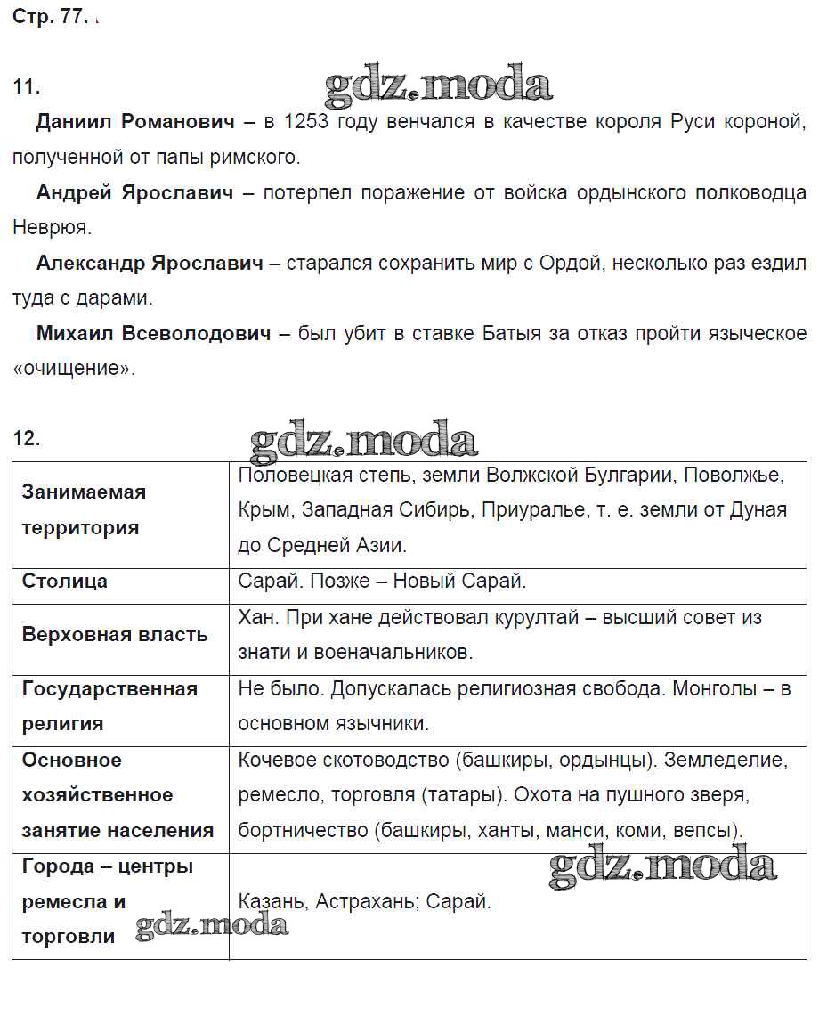 ГДЗ решение к заданию № стр. 77 История России с древнейших времен до начала XVI века 6 класс рабочая тетрадь Кочегаров К.А. (к уч. Пчелова) Русское слово 2017 ФГОС бесплатно на гдз.мода!