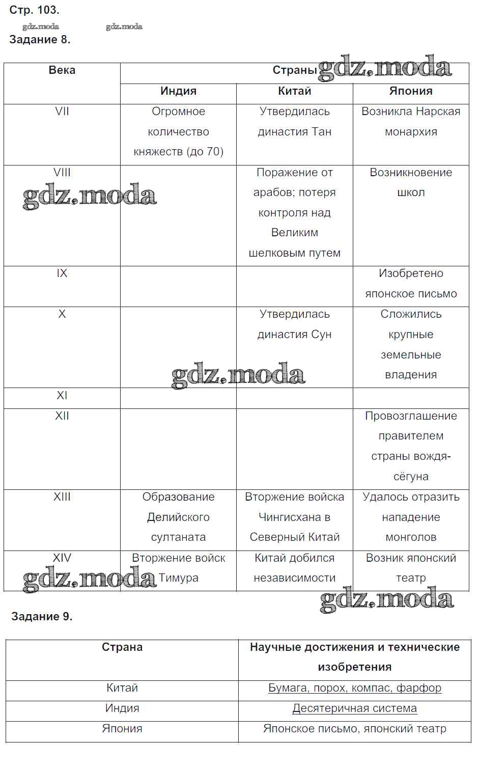 ГДЗ решение к заданию № 103 История Средних веков 6 класс рабочая тетрадь Чернова М.Н. (к уч. Агибаловой) Экзамен 2015 ФГОС бесплатно на гдз.мода!