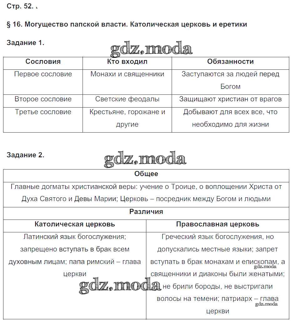 ГДЗ решение к заданию № 52 История Средних веков 6 класс рабочая тетрадь Чернова М.Н. (к уч. Агибаловой) Экзамен 2015 ФГОС бесплатно на гдз.мода!