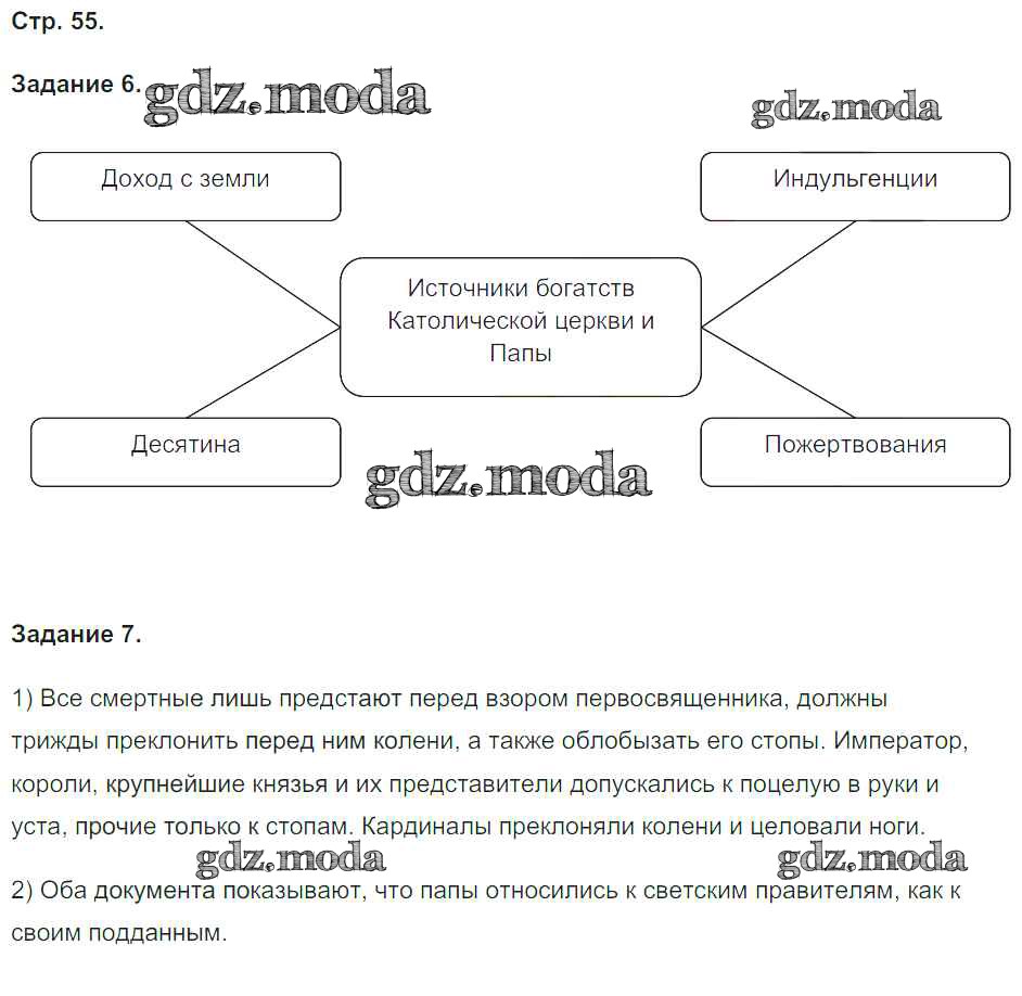 ГДЗ решение к заданию № 55 История Средних веков 6 класс рабочая тетрадь Чернова М.Н. (к уч. Агибаловой) Экзамен 2015 ФГОС бесплатно на гдз.мода!