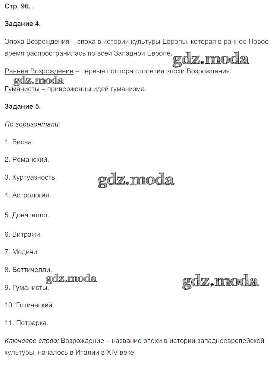 ГДЗ решение к заданию № 96 История Средних веков 6 класс рабочая тетрадь Чернова М.Н. (к уч. Агибаловой) Экзамен 2015 ФГОС бесплатно на гдз.мода!