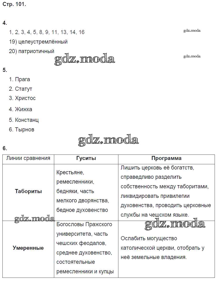 ГДЗ решение к заданию № 101 История Средних веков 6 класс рабочая тетрадь Баранов П.А. Вентана-граф 2017 ФГОС бесплатно на гдз.мода!