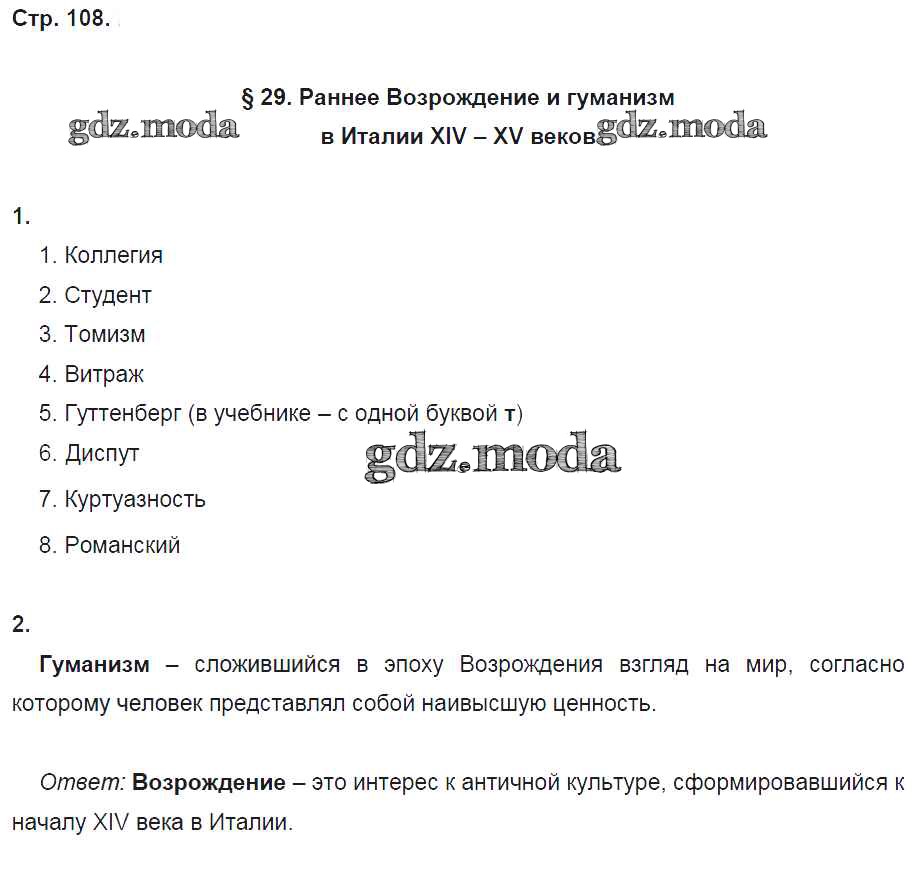 ГДЗ решение к заданию № 108 История Средних веков 6 класс рабочая тетрадь Баранов П.А. Вентана-граф 2017 ФГОС бесплатно на гдз.мода!