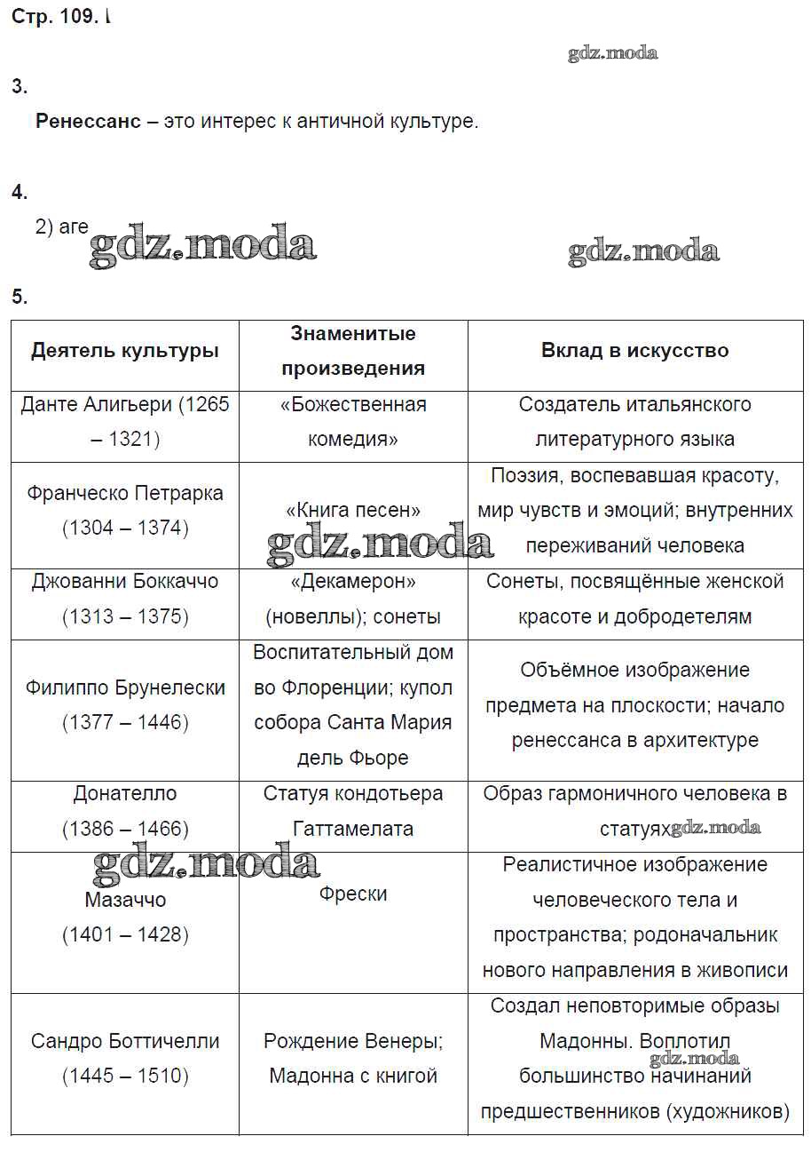 ГДЗ решение к заданию № 109 История Средних веков 6 класс рабочая тетрадь Баранов П.А. Вентана-граф 2017 ФГОС бесплатно на гдз.мода!