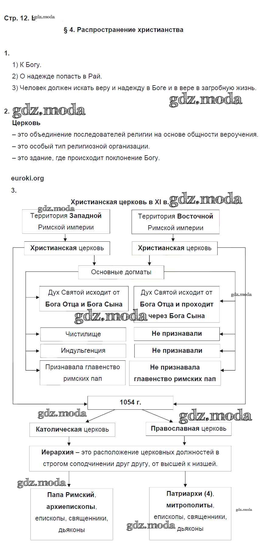 ГДЗ решение к заданию № 12 История Средних веков 6 класс рабочая тетрадь Баранов П.А. Вентана-граф 2017 ФГОС бесплатно на гдз.мода!