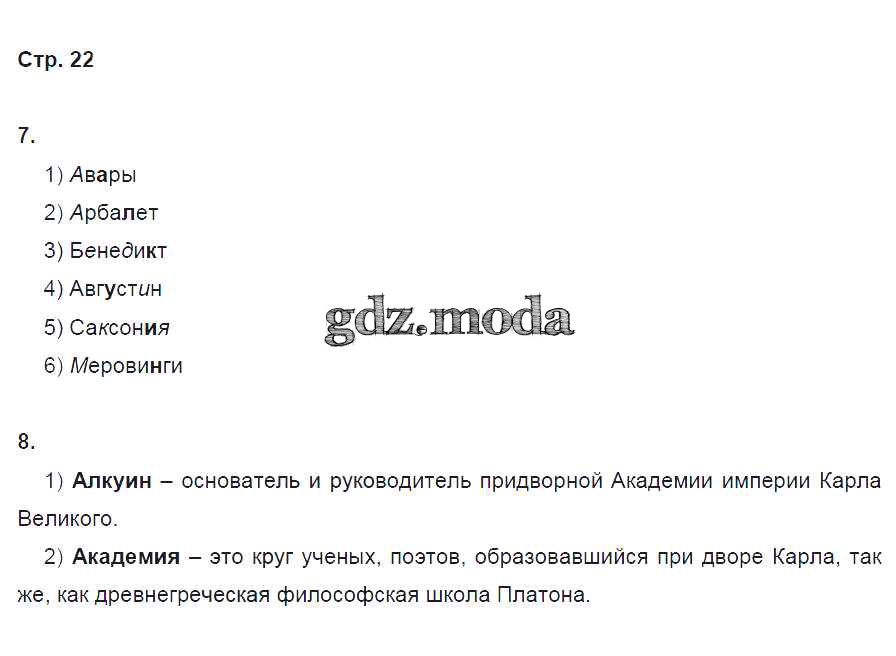 ГДЗ решение к заданию № 22 История Средних веков 6 класс рабочая тетрадь Баранов П.А. Вентана-граф 2017 ФГОС бесплатно на гдз.мода!