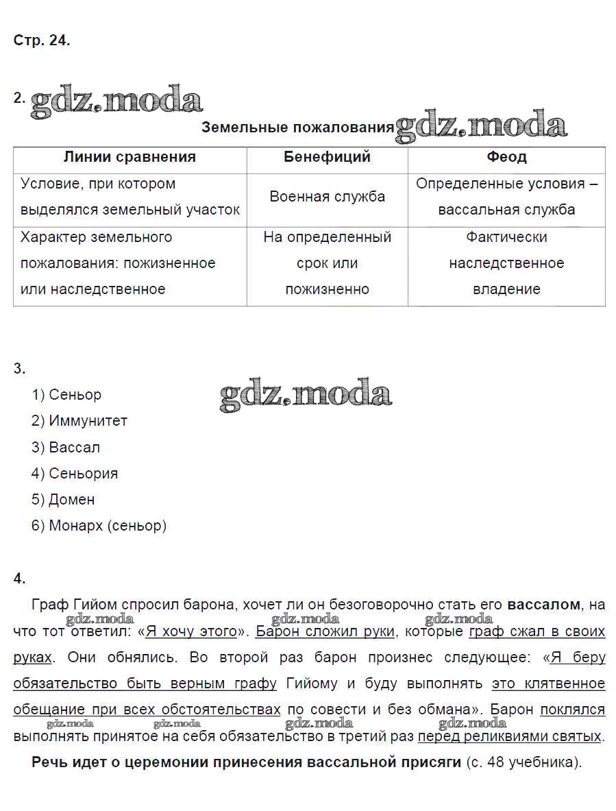 ГДЗ решение к заданию № 24 История Средних веков 6 класс рабочая тетрадь Баранов П.А. Вентана-граф 2017 ФГОС бесплатно на гдз.мода!