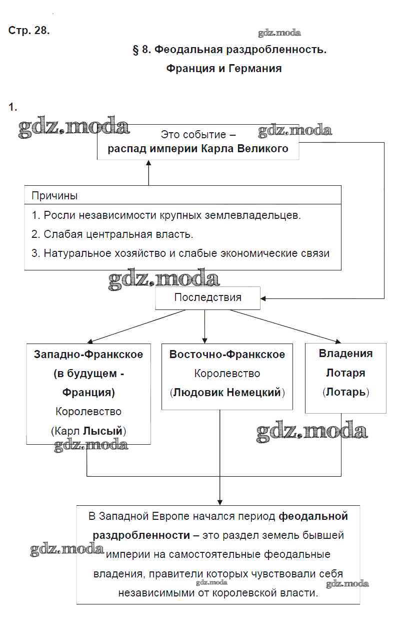 ГДЗ решение к заданию № 28 История Средних веков 6 класс рабочая тетрадь Баранов П.А. Вентана-граф 2017 ФГОС бесплатно на гдз.мода!