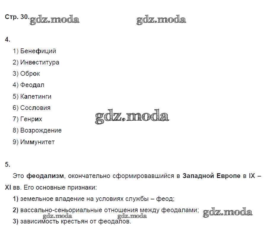 ГДЗ решение к заданию № 30 История Средних веков 6 класс рабочая тетрадь Баранов П.А. Вентана-граф 2017 ФГОС бесплатно на гдз.мода!