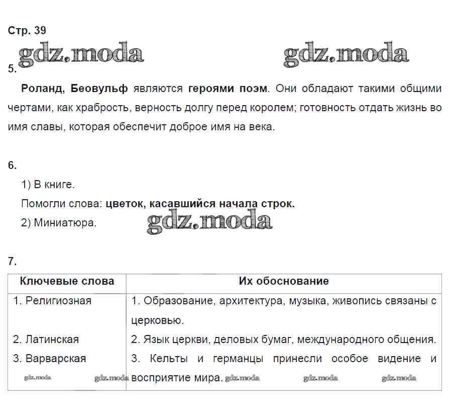 ГДЗ решение к заданию № 39 История Средних веков 6 класс рабочая тетрадь Баранов П.А. Вентана-граф 2017 ФГОС бесплатно на гдз.мода!
