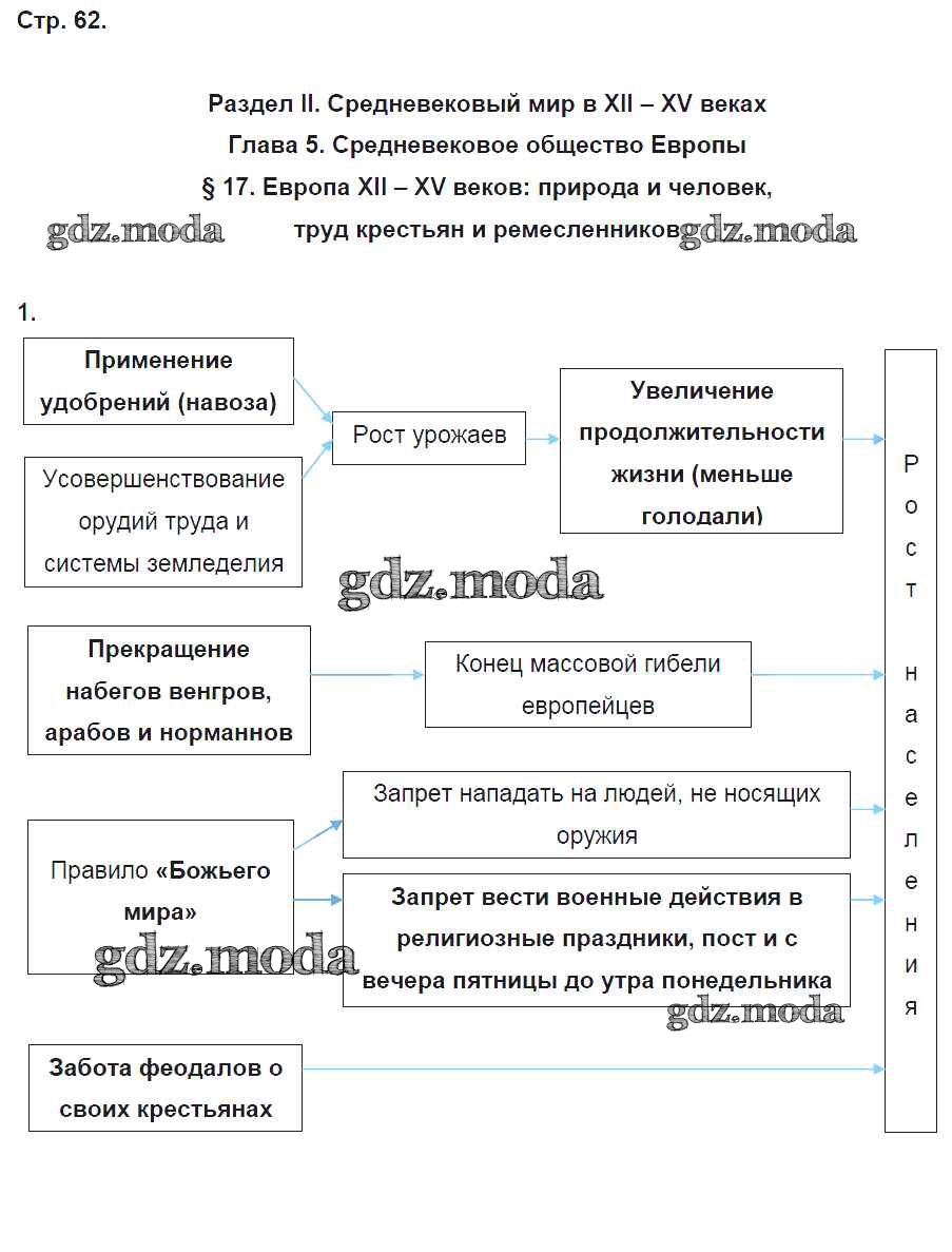 ГДЗ решение к заданию № 62 История Средних веков 6 класс рабочая тетрадь Баранов П.А. Вентана-граф 2017 ФГОС бесплатно на гдз.мода!