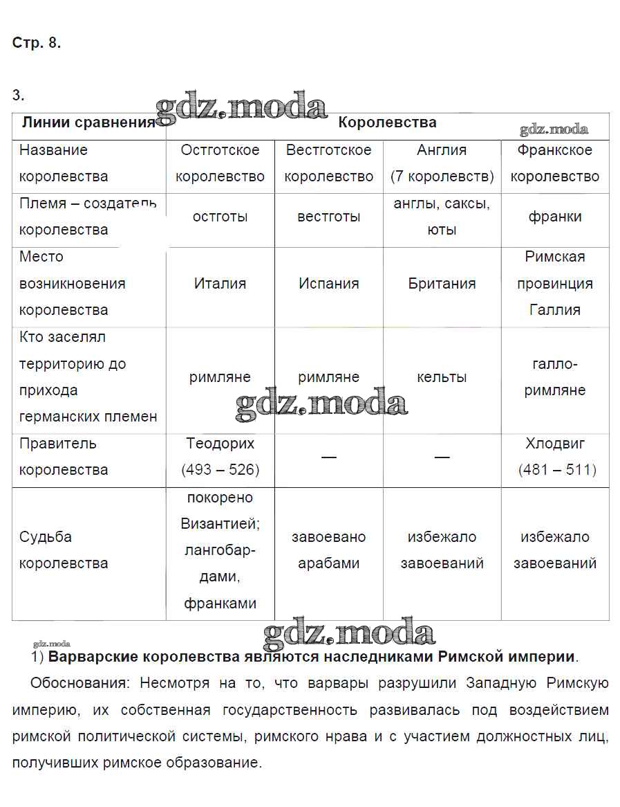 ГДЗ решение к заданию № 8 История Средних веков 6 класс рабочая тетрадь Баранов П.А. Вентана-граф 2017 ФГОС бесплатно на гдз.мода!